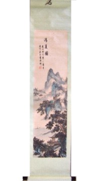 The Picture is painted on the rice paper. After finishing painting, do the "Shan Biou" procedure which puts the rice paper on another thick paper to let the paper thick. At last, add the cloth material around the rice paper to protect it.
