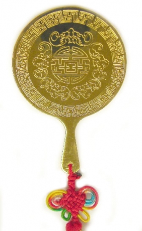 Mystic knot and red tassel are attached to this brass mirror to symbolize success and wealth. Having such brass mirror at home can ward to bad chi and attract wealthy and healthy chi in.