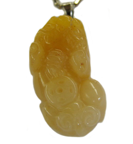 The diamesion of jade Pi Xie pendant itself is approx. 1" in length. It is made of Chinese yellow jade.