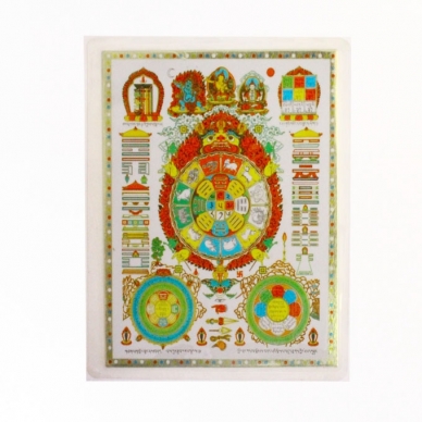 This feng shui amulet is Tibetan amulet in which it shows the stomach of the tortoise and as many other powerful Tibetan symbols, such as Kalachakra Tenfold Powerful symbol, Dzambhala and Tara, etc. On the surface of the stomach of the tortoise, there are pictures of Nine Palace of flying stars, Bagua and 12 Chinese zodiac animals. It is very powerful amulet to ward off all kinds of bad energies.