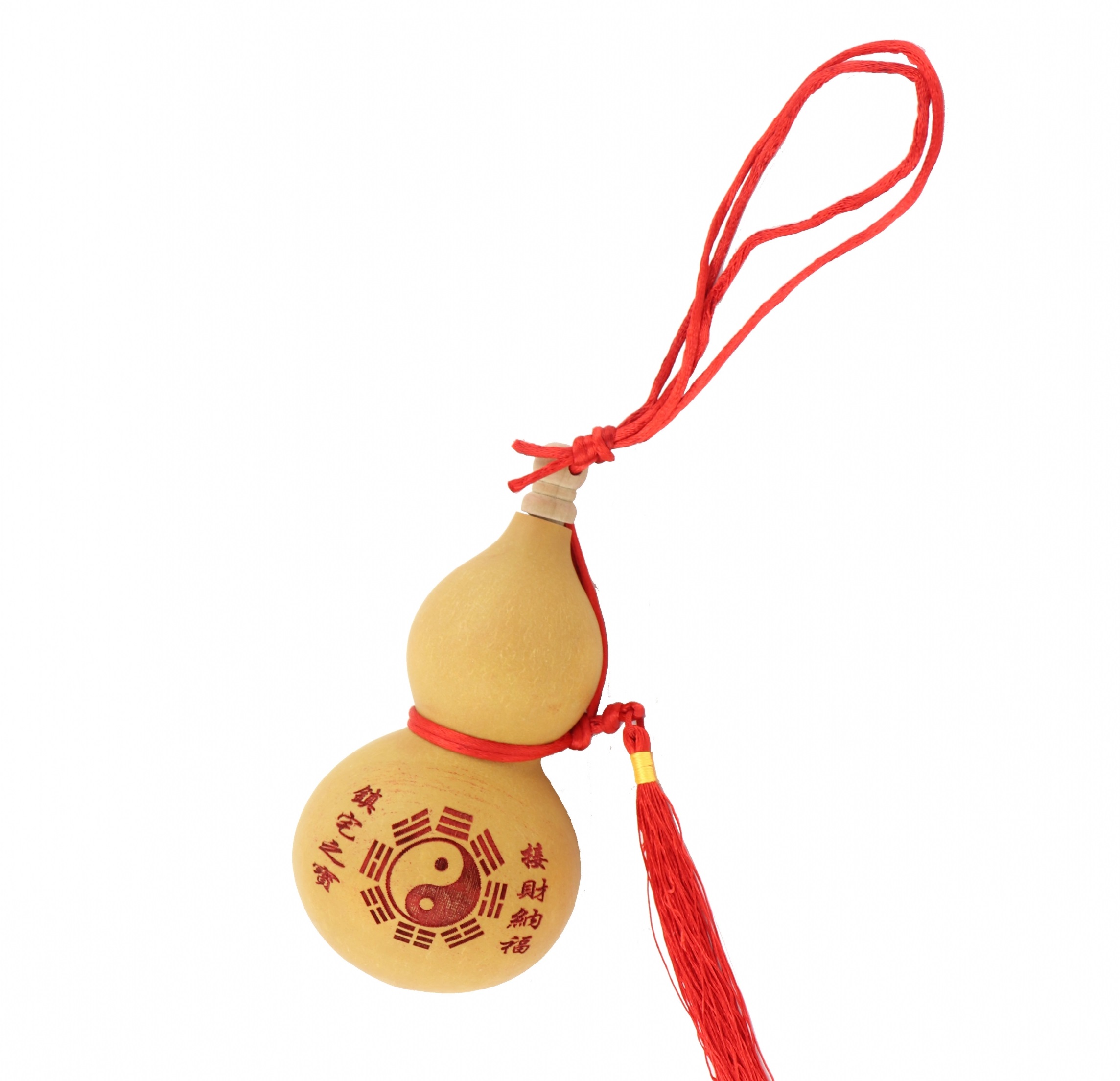 Also known as the bottle gourd, the wo lou is known to promote good health, prosperity, and good blessings. The unique shape of the wo lou is said to represent the unity of the heavens and earth: promoting one’s connection to one’s inner spirit. The wo lou is said to enhance one’s feng shui and increase positive chi in an environment and family. The wu lou is also attached one big red tassel and nice mystic knot.