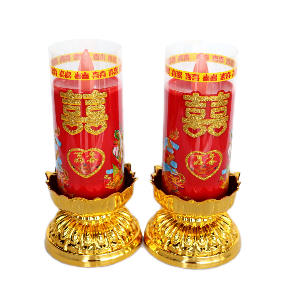 Chinese culture popularly displays Double Happiness symbols at home to bring in positive luck and happiness. The Pair of Double Happiness Candles are battery