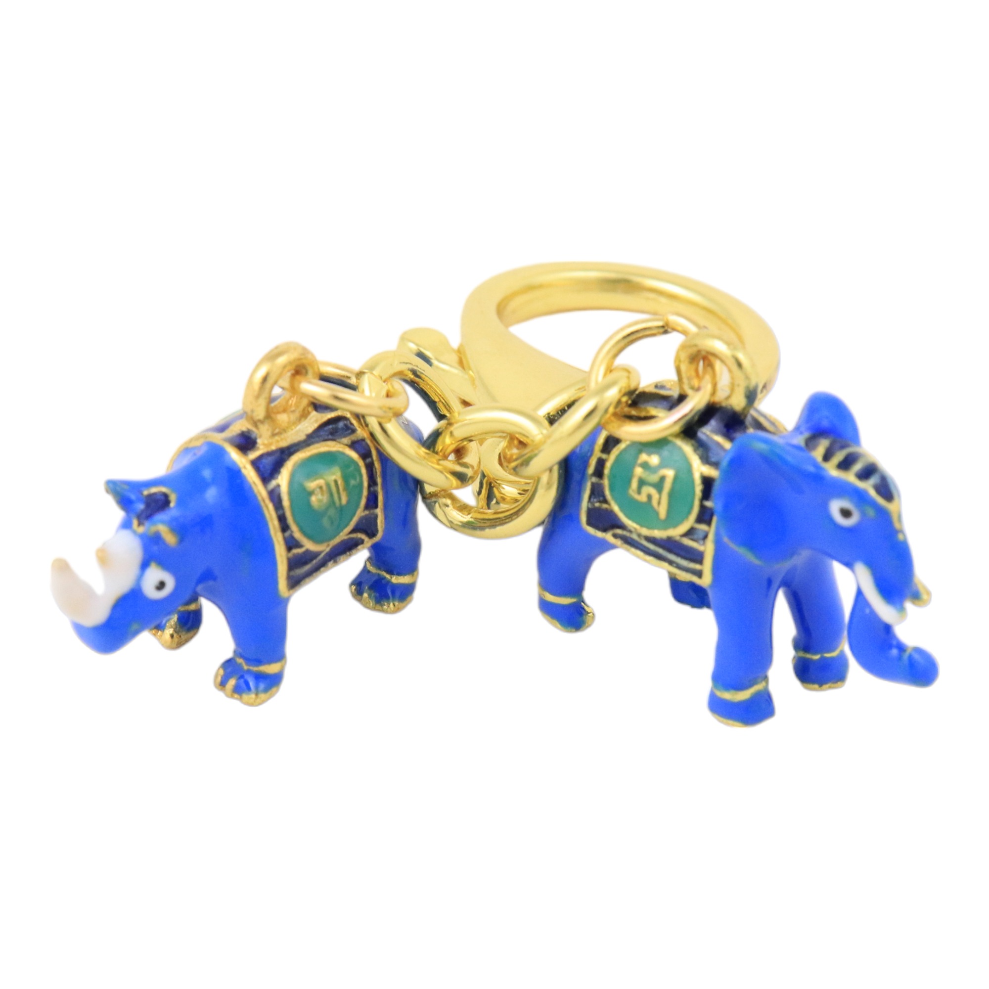 The Rhinoceros and Elephant can stand by themself. The dimension of each Rhinoceros and Elephant statue is approx. 1.125"(L) x 0.4"(W) x 0.75"(H). The whole length of this amulet keychain is approx. 3.5". It is made of metal.