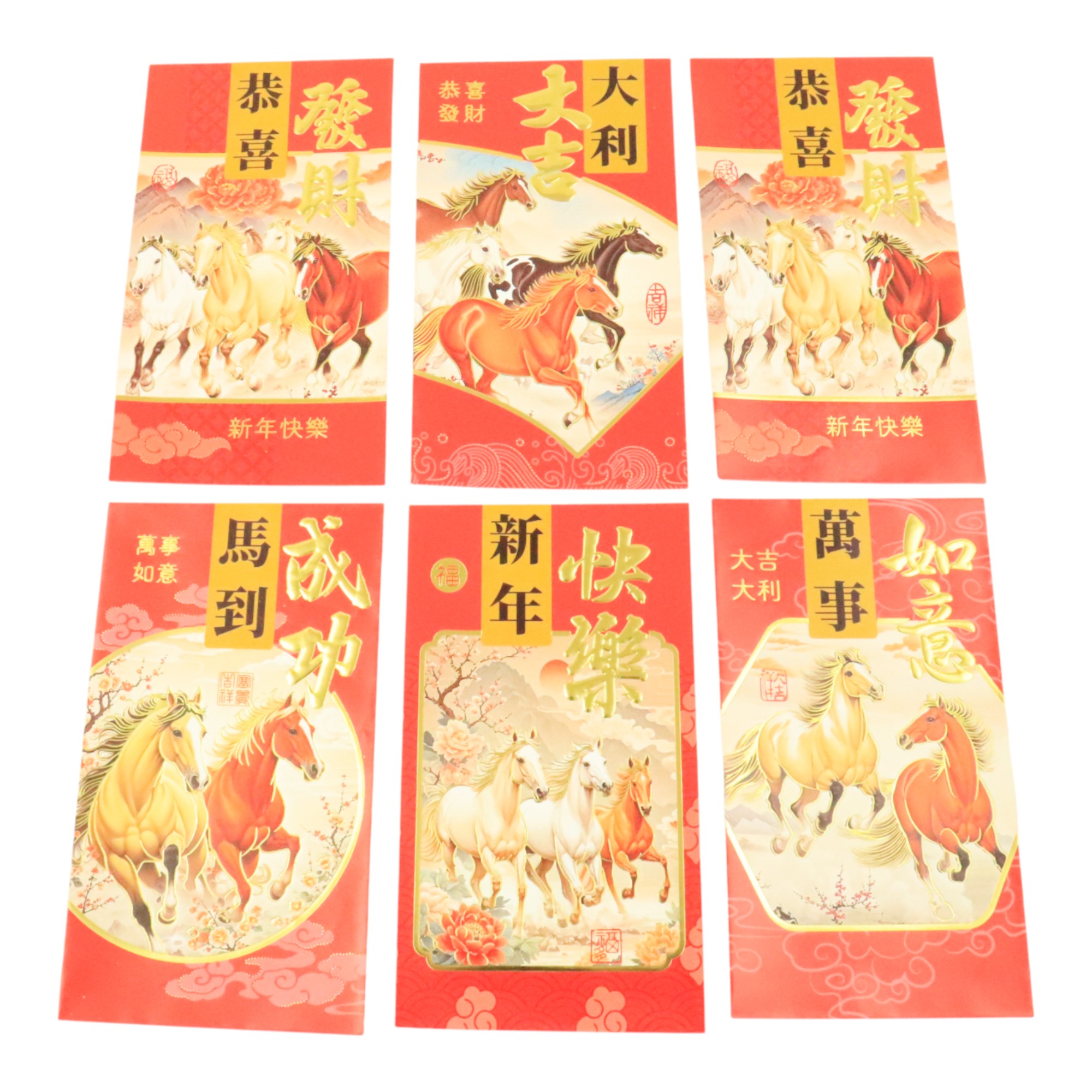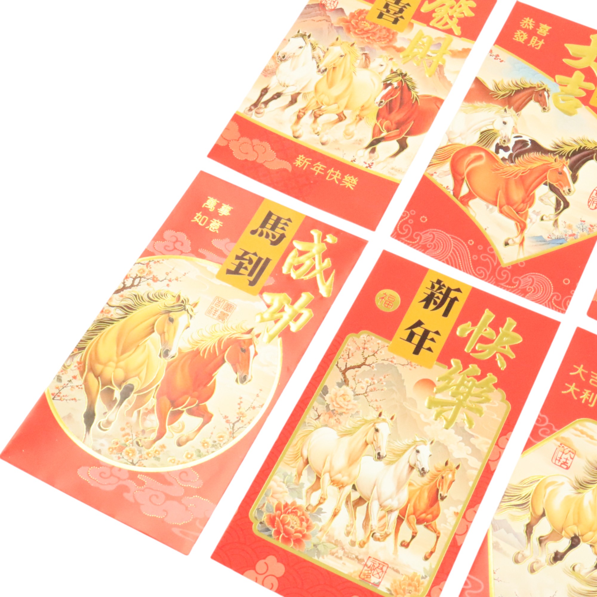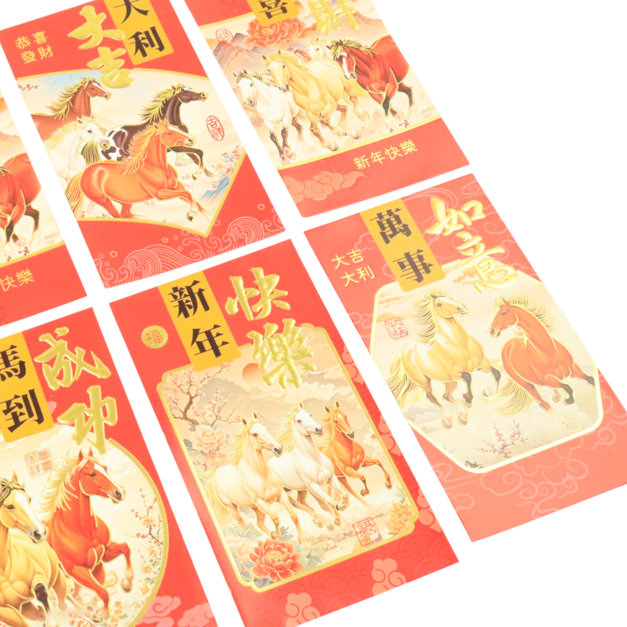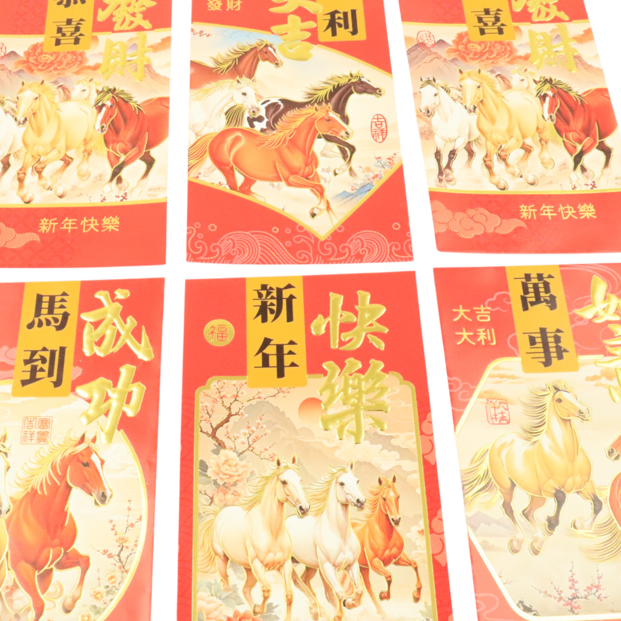 These big colorful Chinese money envelopes have beautiful pictures of vivid golden horse and Chinese auspicious words on red background. They are great for Chinese New Year - lunar year of the Horse.