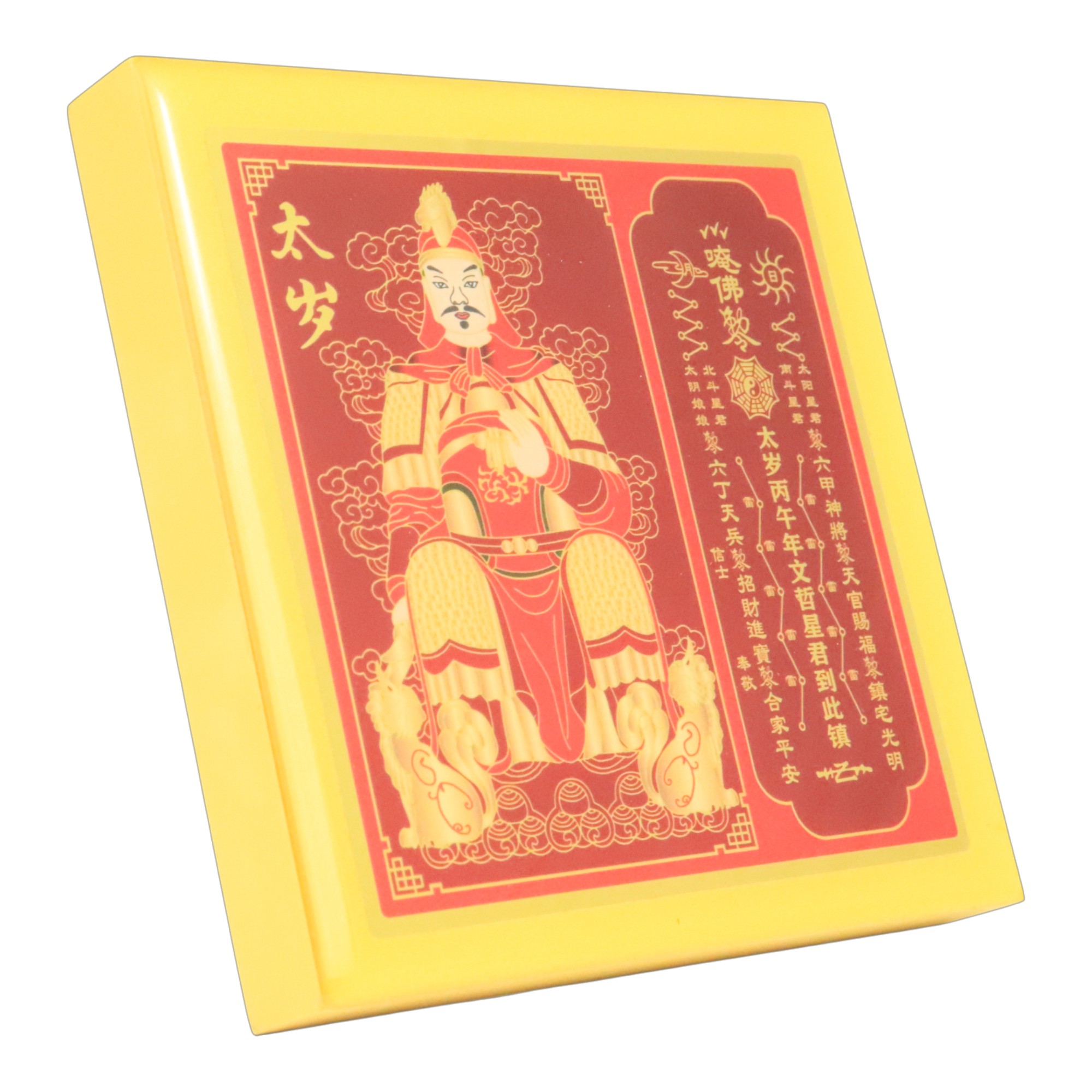 This beautiful handy pocket sized Tai Sui Card features the noble Tai Sui (also known as Grand Duke Jupiter). In Chinese culture, Tai Sui is a position in the celestial heavens responsible for the world's affairs for a certain year. People's happiness, luck, fortune, health, and prosperity are all under his control. It is said that one must appease and pay respect to Tai Sui to avoid a year full of obstacles and difficulties.