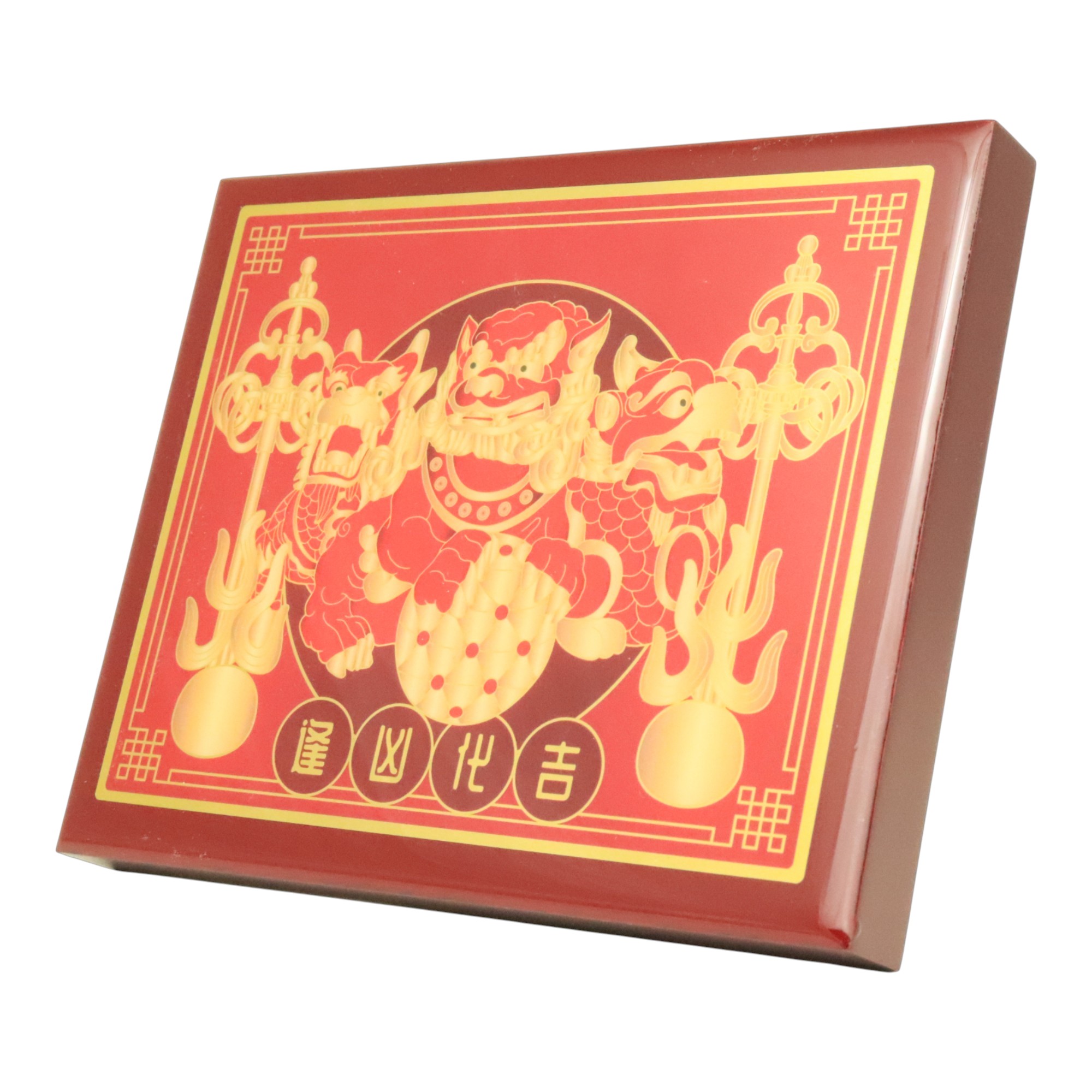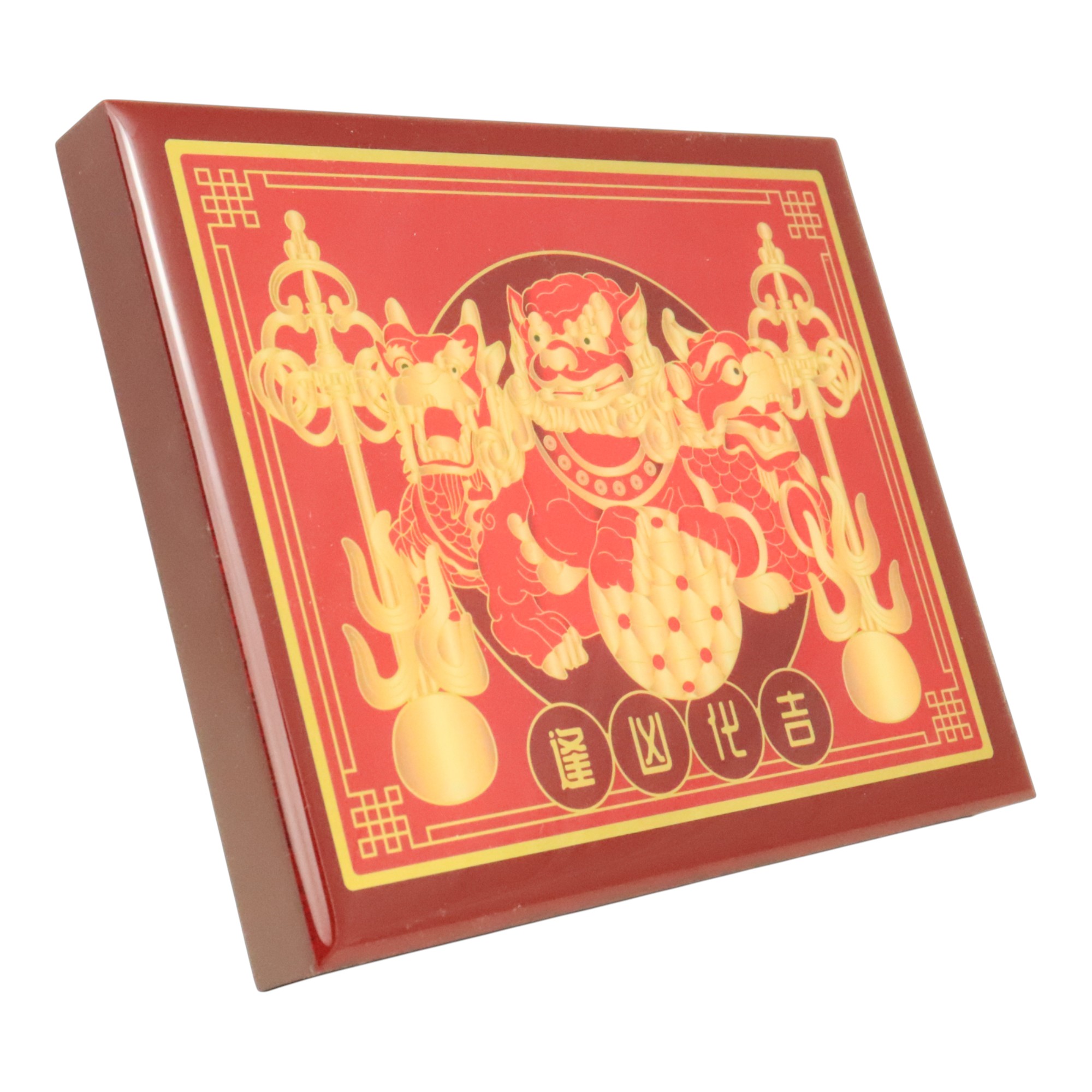 Featuring the three celestial guardians, which are Foo Dog, Pi Yao and Chi Lin, this 3 Celestials Plaque with Ksitigarbha's Implements is the best cure to Three Killings that bring 3 kinds of misfortune: loss of good reputation, loss of finances and loss of the relationships.