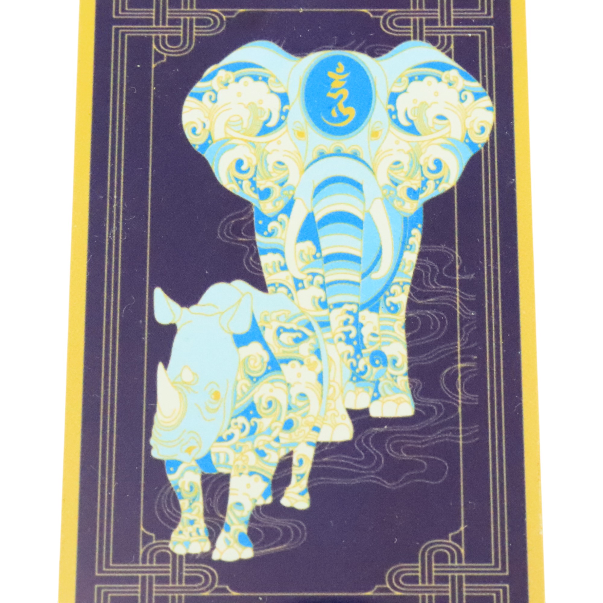 This beautiful talisman card has the image of one pair of blue rhino and elephant in the front whilst the powerful anti-burglary amulet and sacred seed syllable HUM on the back.