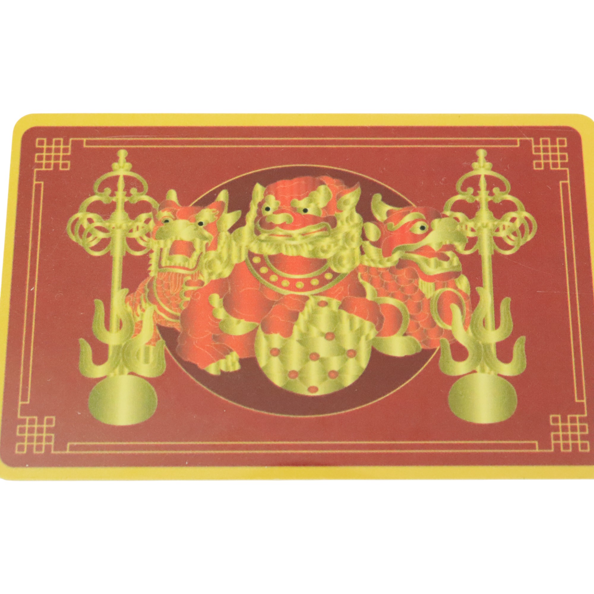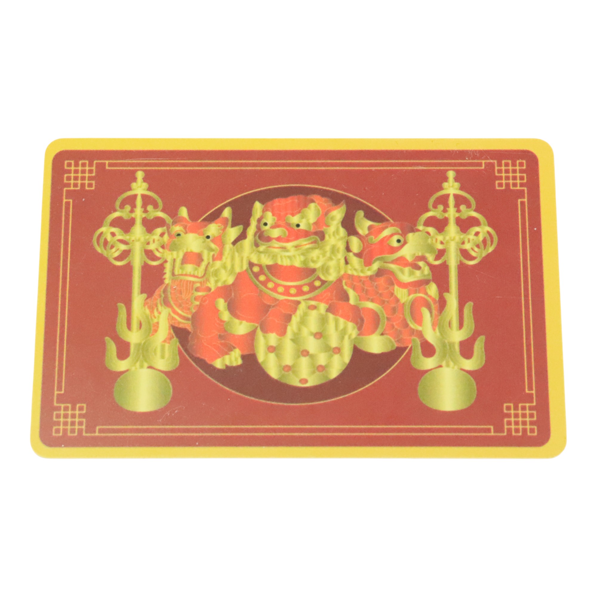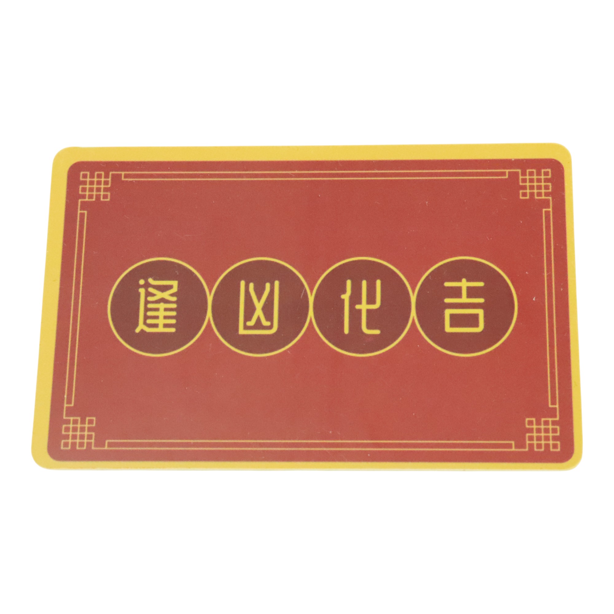 On the front, featuring the images of three celestial guardians with 2 powerful Ksitigarbha's implements. The Chinese auspicious words "Turning the misfortune into the good fortune" are printed on the back.