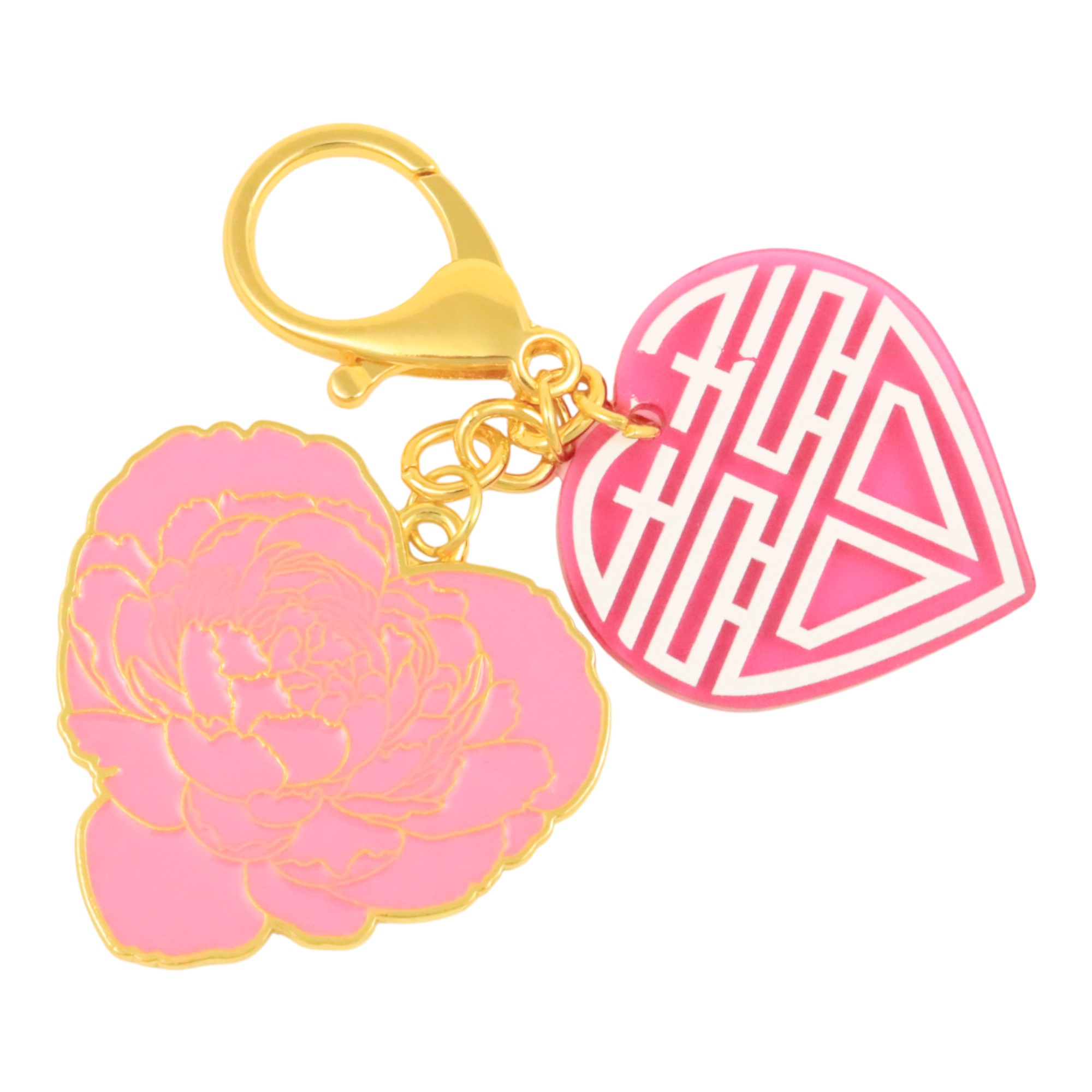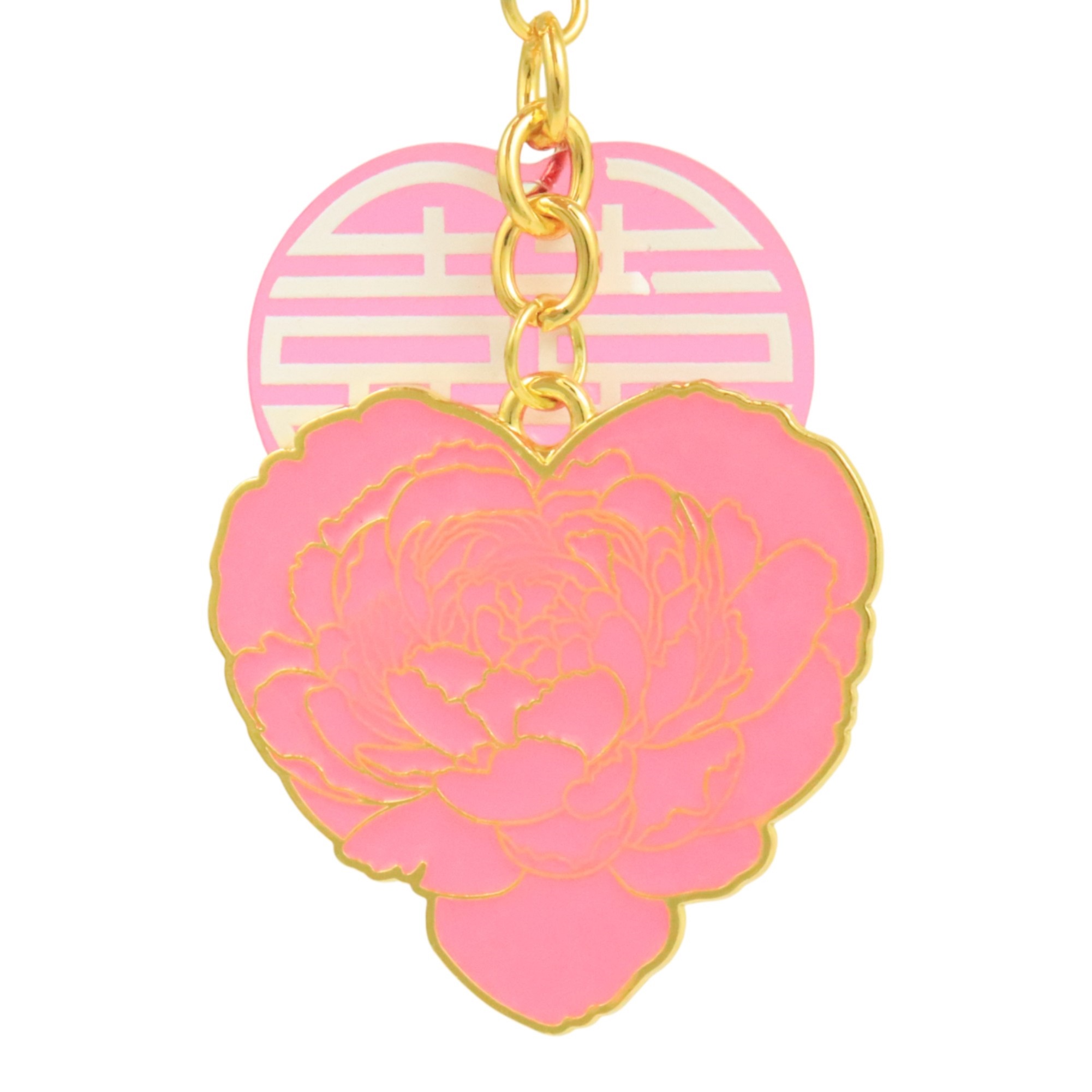 This Love talisman features double hearts in pink engraved with the double happiness symbol, peony and blessing words to stand for Heart to Heart in Knowing Each Other.