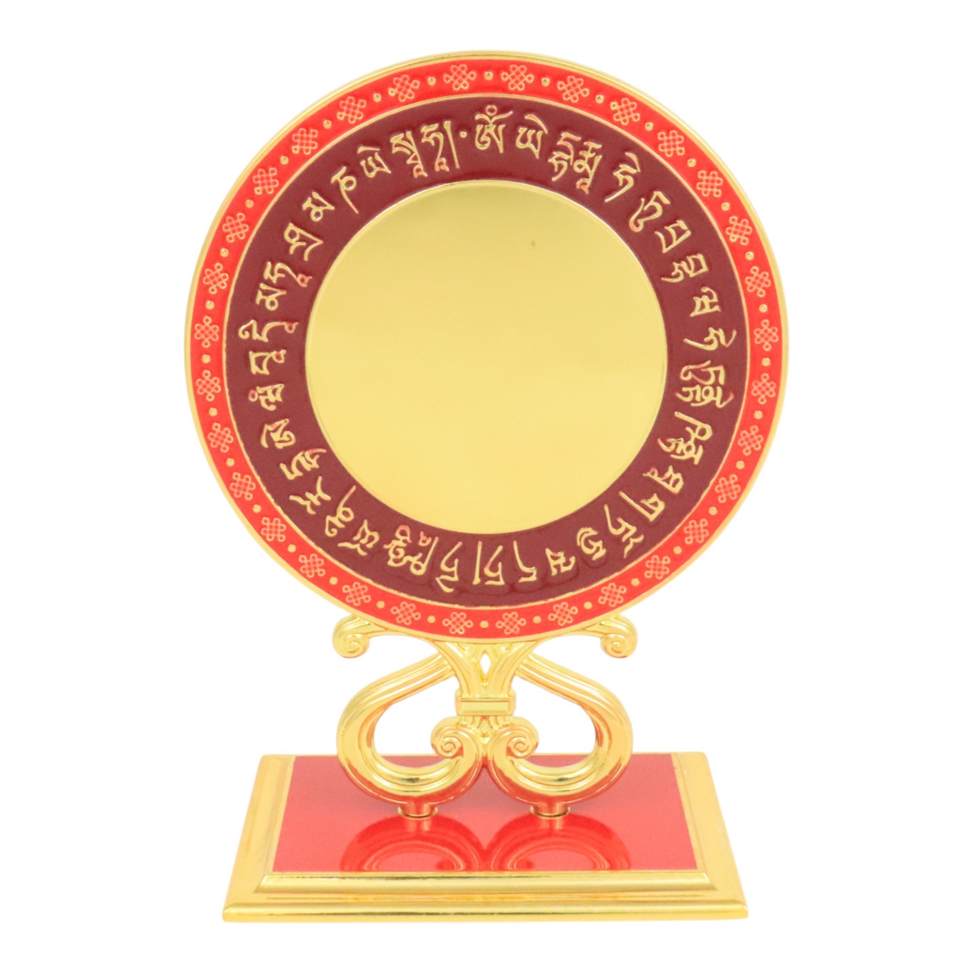 On the reverse side, one mirror surrounded by wish-granting mantras can transform bad energies into good fortune.