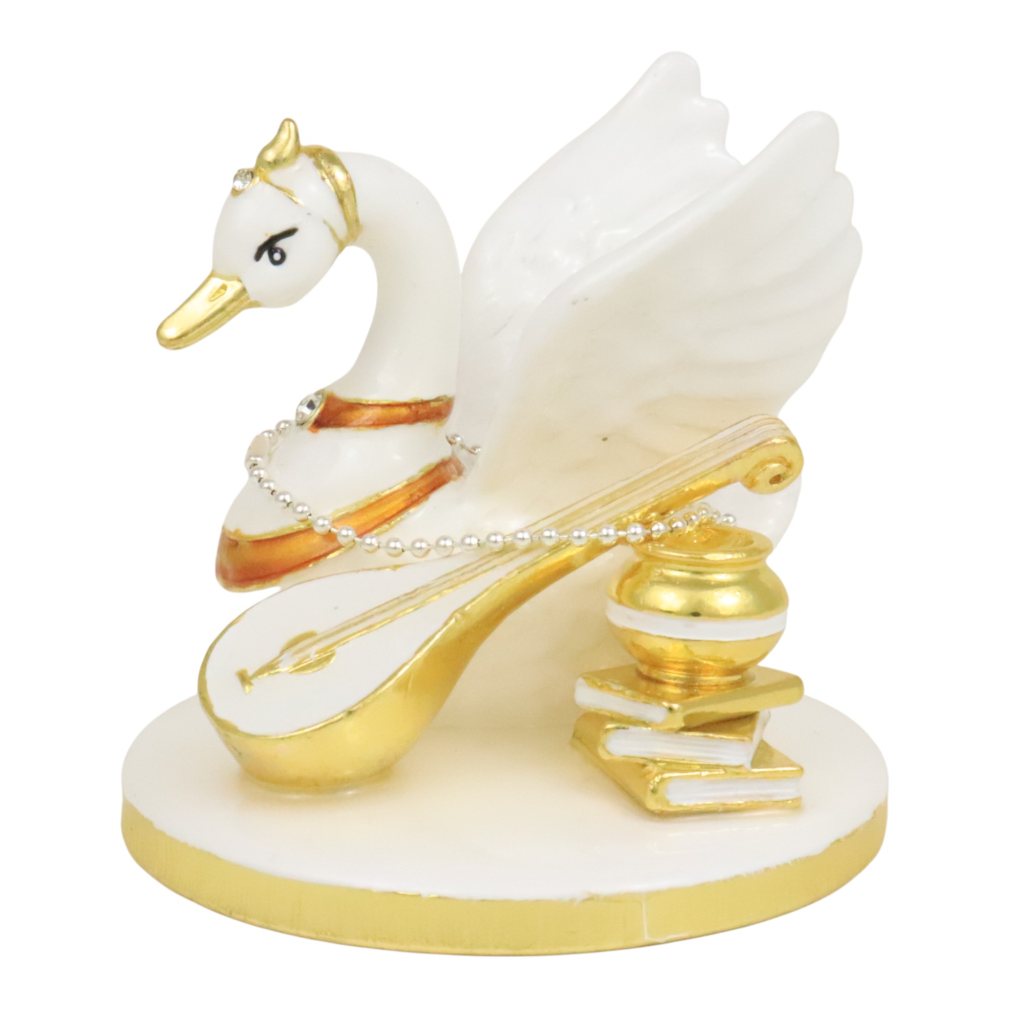 This beautiful Saraswati’s swan features carrying scholastic symbols (books, a musical instrument) and one pendant of wish-granting amulet. It is a powerful enhancer for career and education.