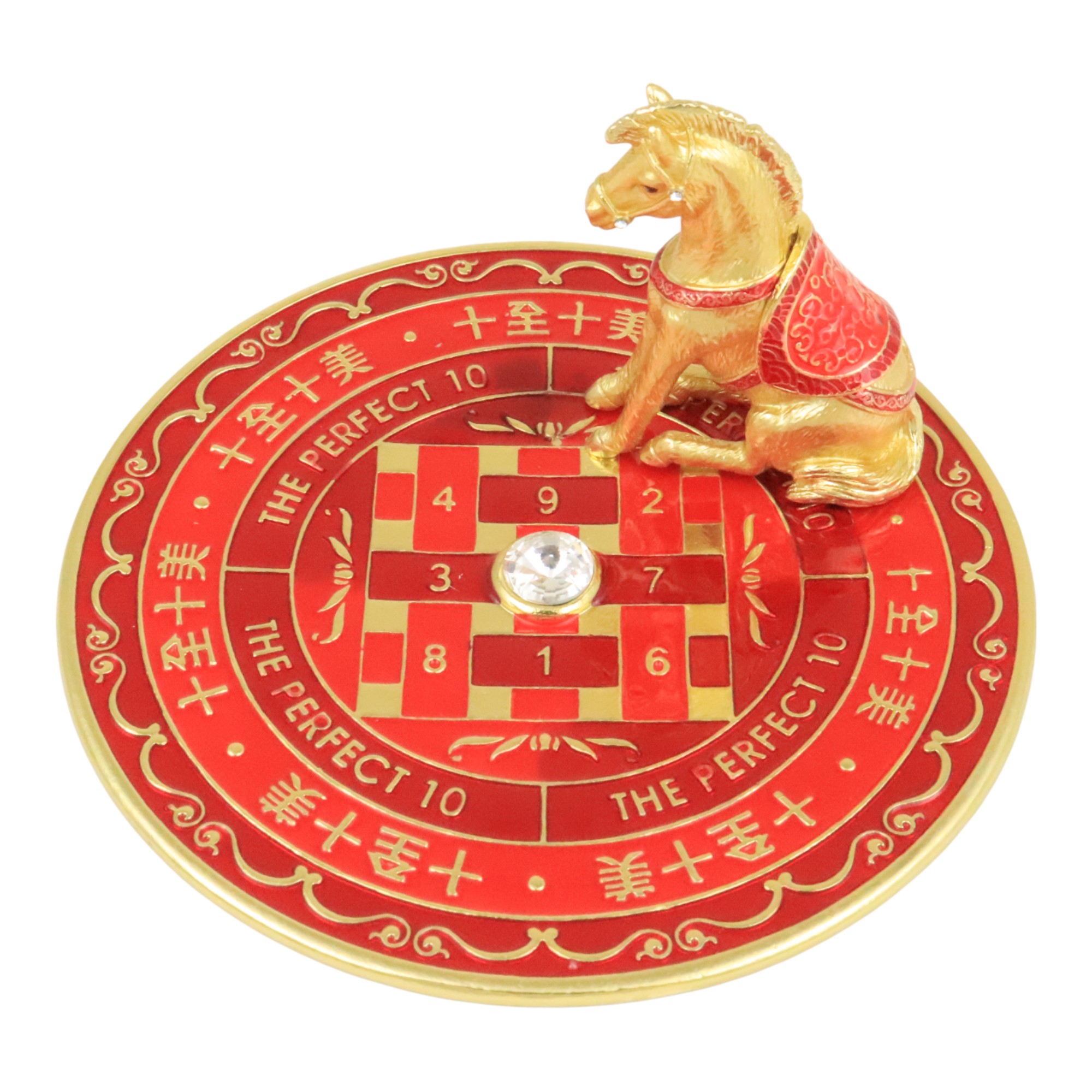 This Perfect Ten Enhancer features one Completion Horse with a plate engraved with Chinese phrase Shi Quan Shi Mei (meaning Perfect in Every Aspect) and the magic Sum of Ten.