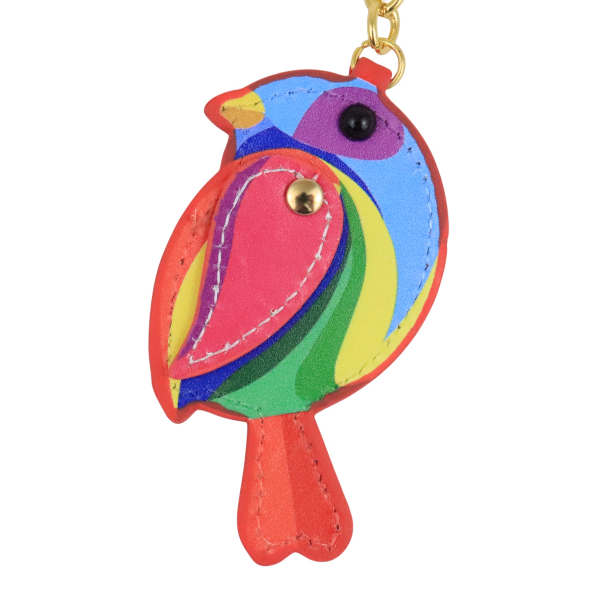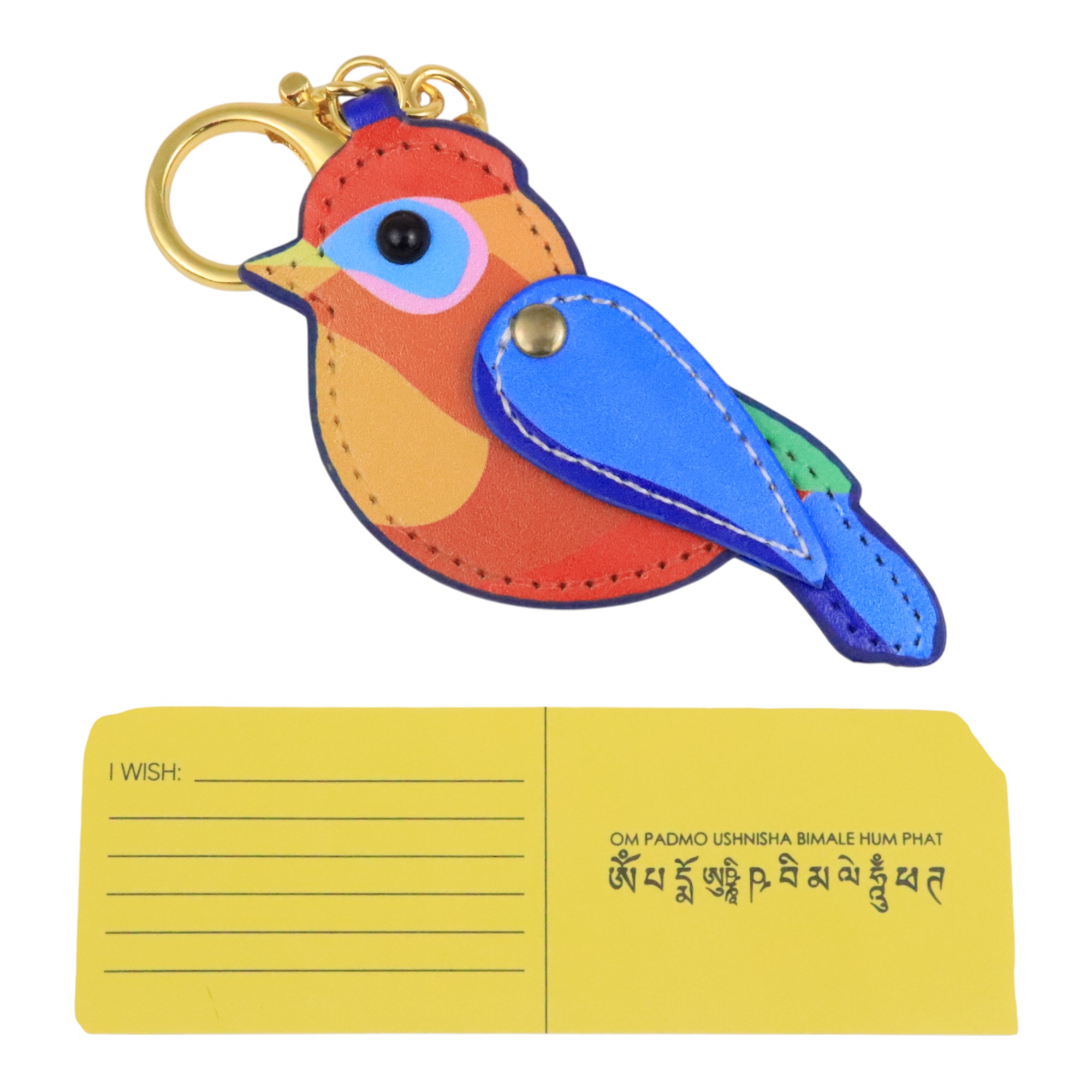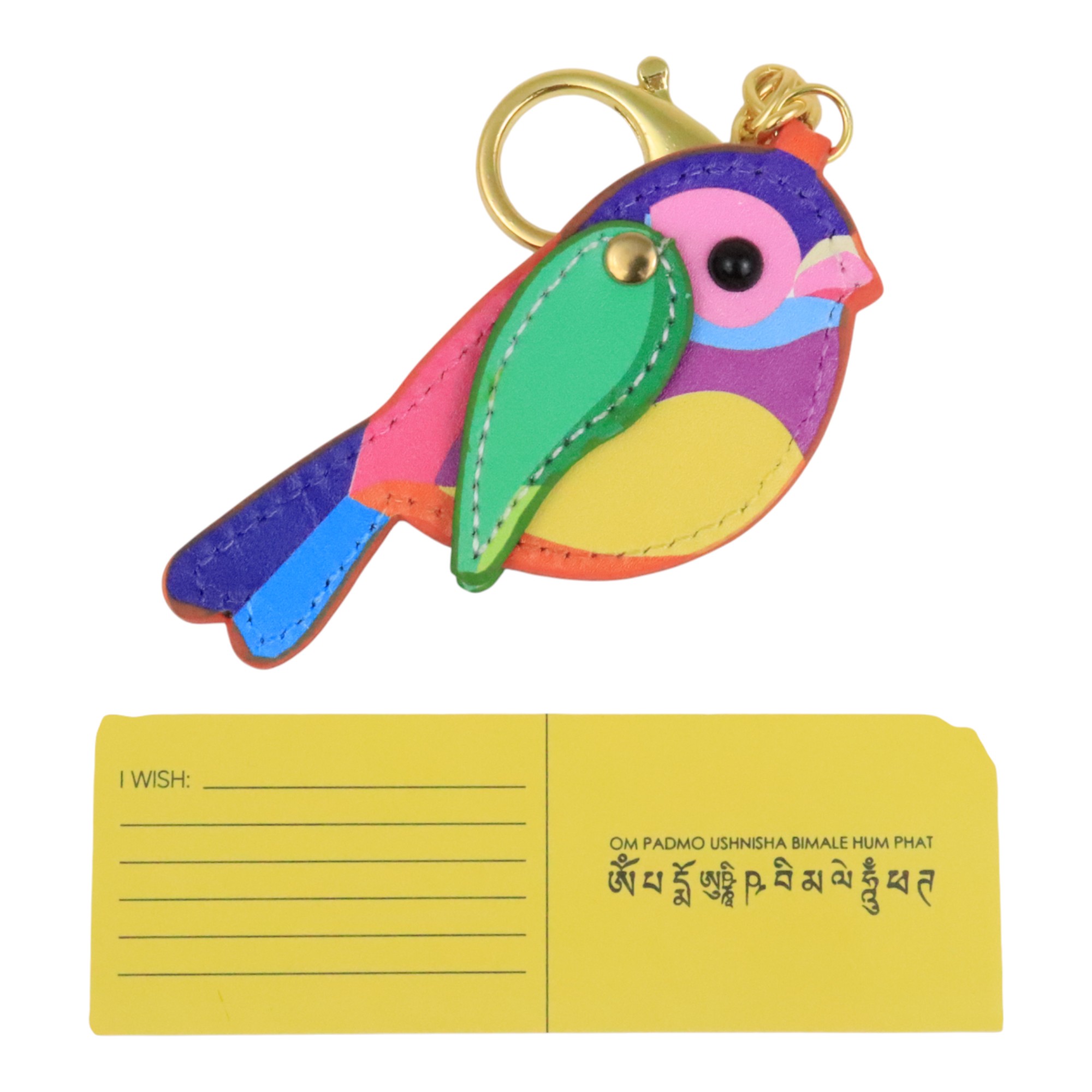 The dimension of the Wish Fulfilling Bird Bag keychain is approx. 2" x 0.25" x 6" . It is made of PU.