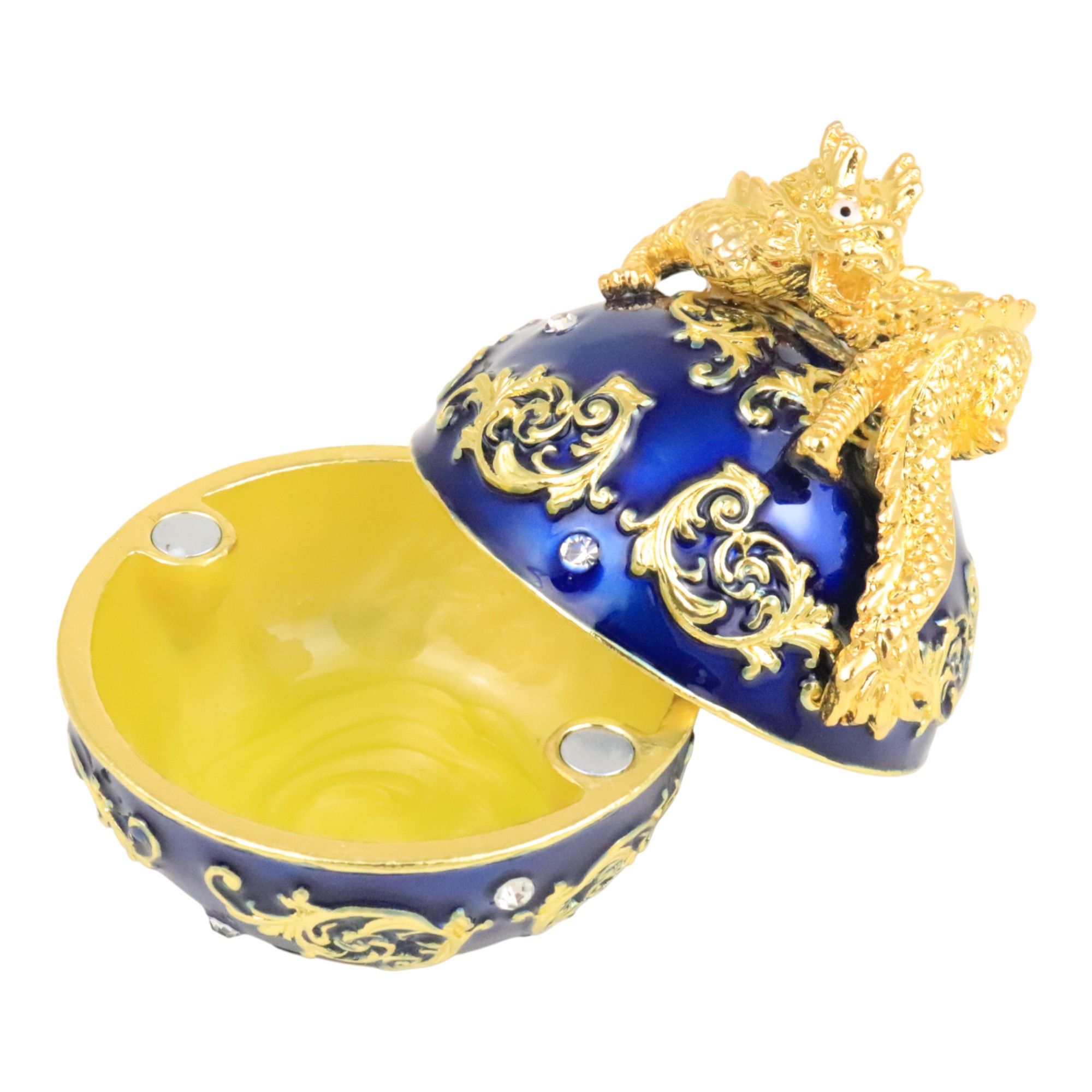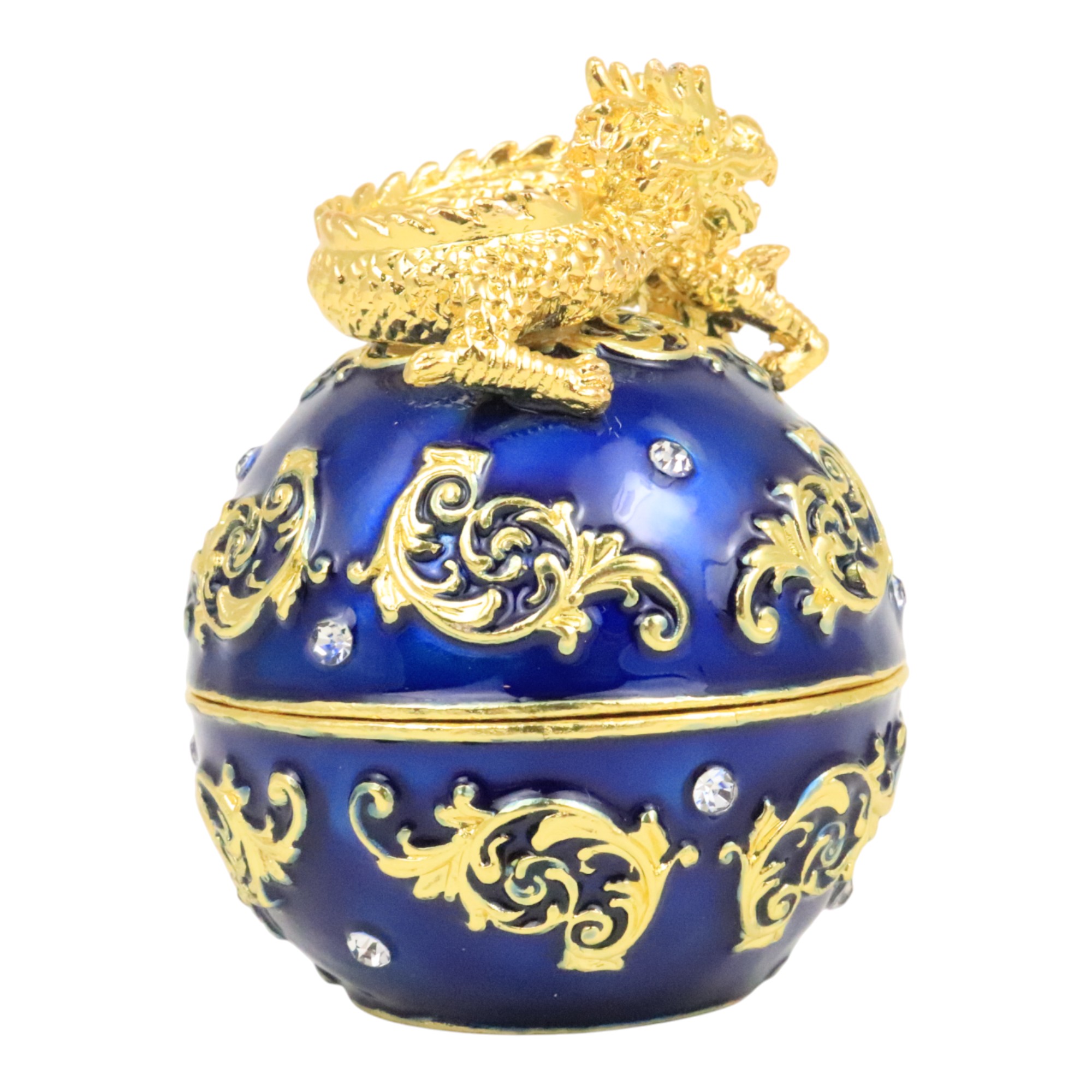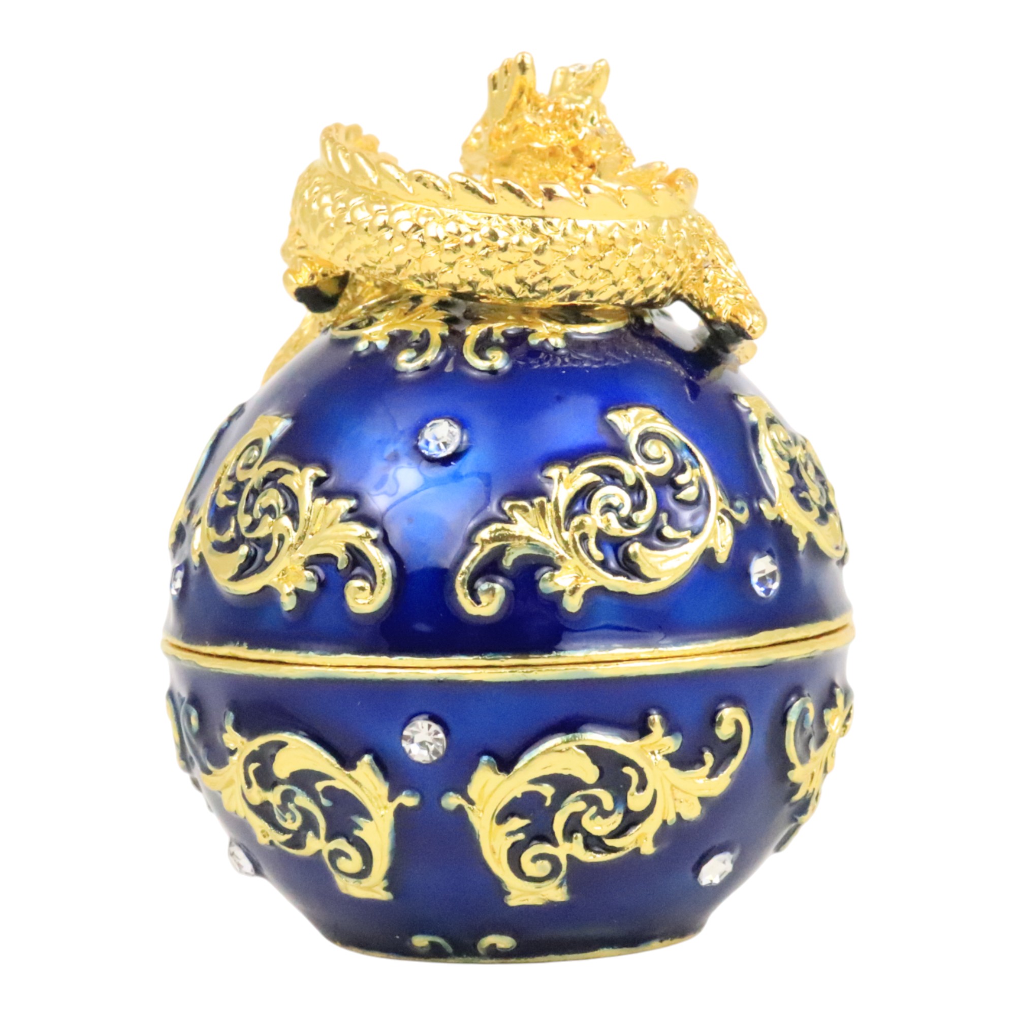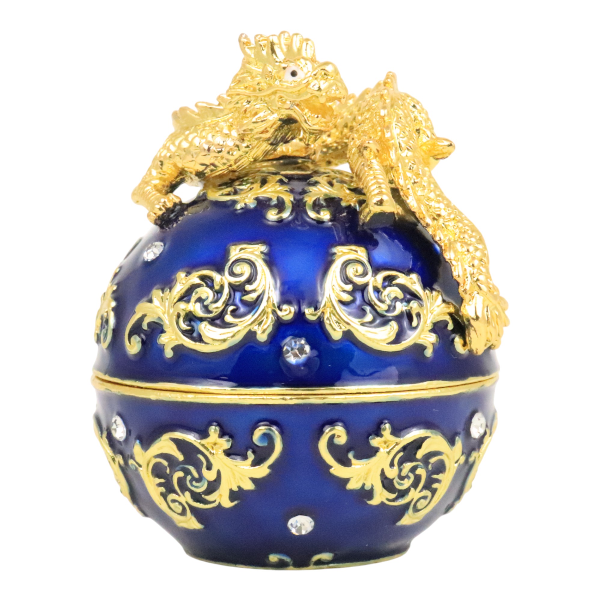 This dragon treasure box features one gold dragon on one blue pearl. It stands for the rise of the position, leadership and authority. Display it at your desk to stimulate the chance of promotion in your career.