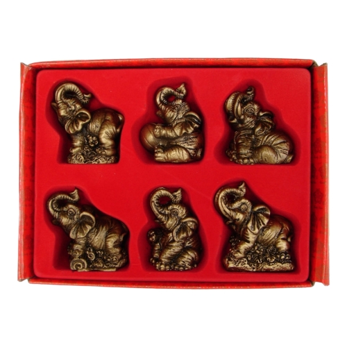 It is said elephant can bring good luck and health to home/office when you place it at home/office. It is the symbol of strength, discretion, vigor and harmony. There are six various small golden elephants in this set.